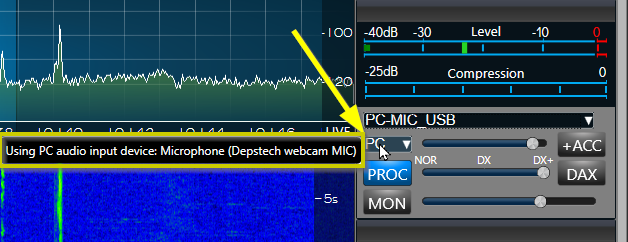 - You CANNOT have the DAX TX button enabled (BLUE) when using the PC Mic input. (TX DAX overrides the PC Mic input.)
