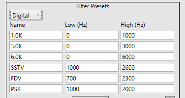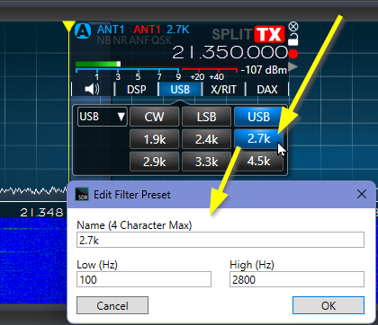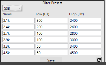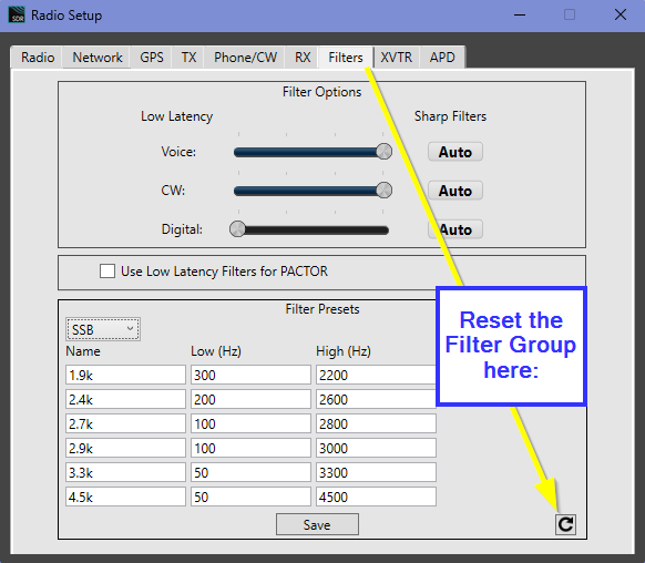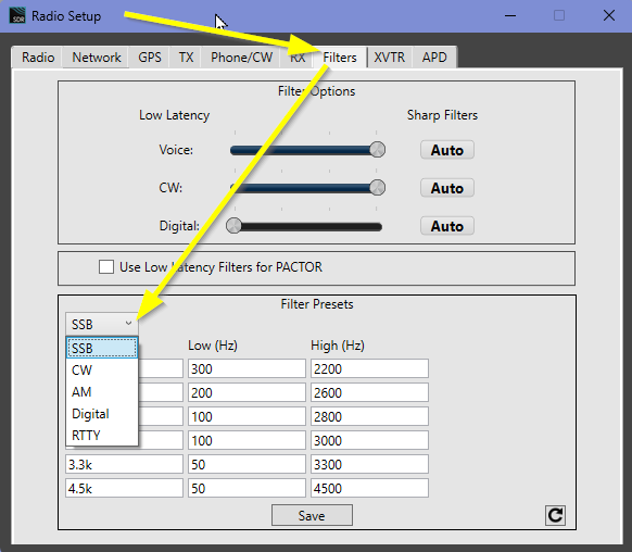 - Open the SmartSDR "Settings > Radio Setup > Filters" tab.