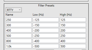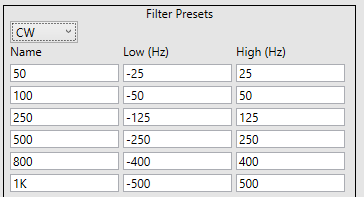 - For CW: use -125 / +125 for a 250 Hz wide filter.
