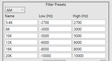 - For AM: use -3000 / +3000 for a 6 kHz wide filter.