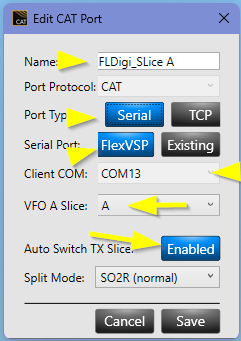 - Give a descriptive "Name" to the Port (Example: "FLDIGI_Slice A")